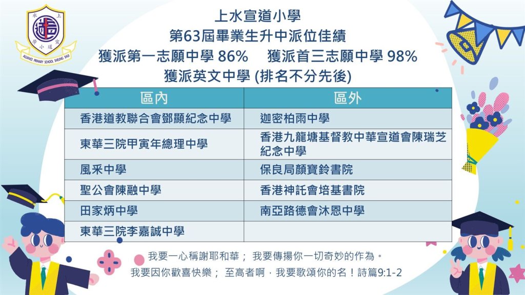| 聖公會莫壽增會督中學 | - | - | 1 | 1.1% | 1 | 1.1% | 1A | 11 | 男女 | 大埔 | 英文 |
