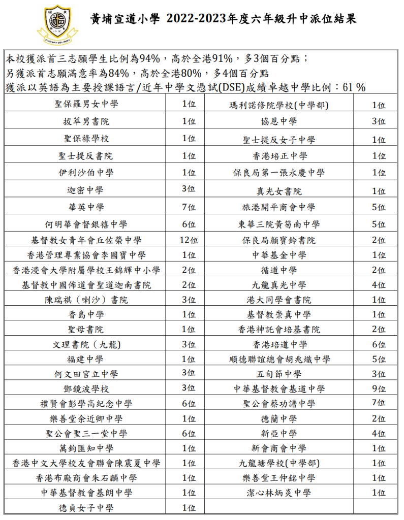 | 聖母書院 | - | - | - | - | 1 | 0.7% | 3B | 390 | 女 | 黄大仙 | 英文 |