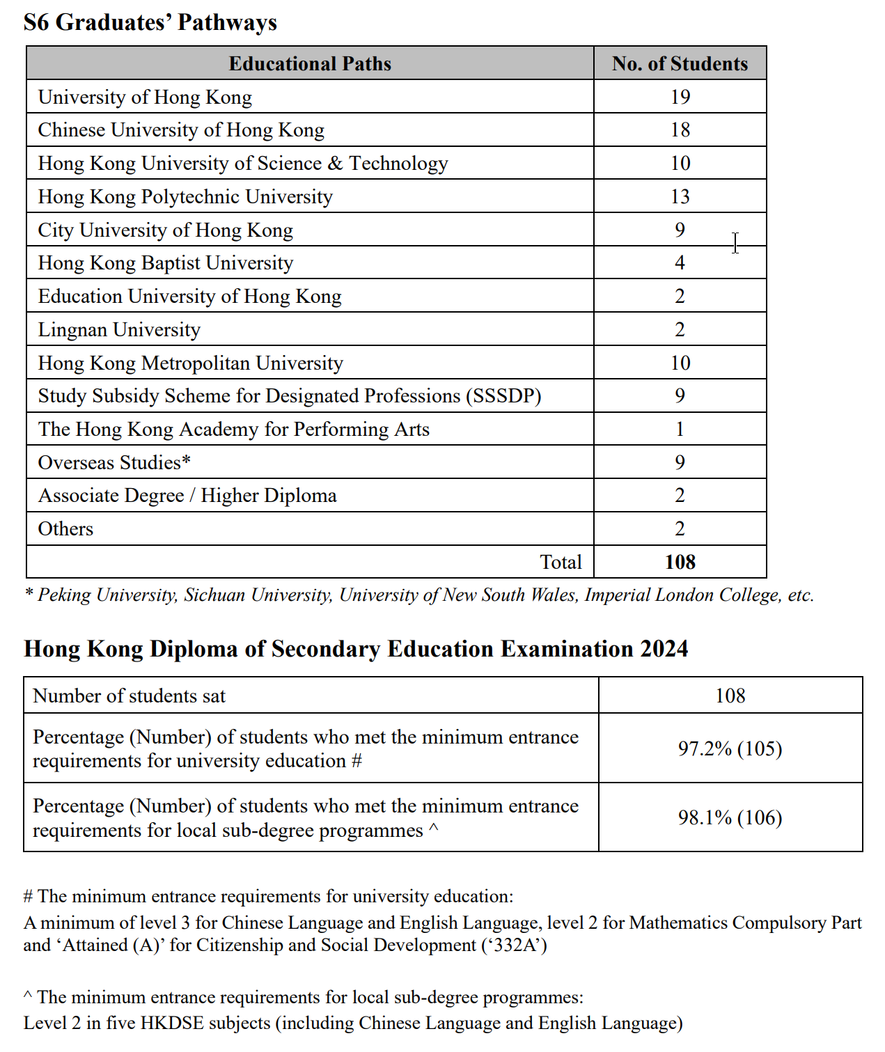 副学士学位课程 Associate Degree Program | 14 | 13.9% | 2 | 1.8% | - | - | - | 副学士/预科 |