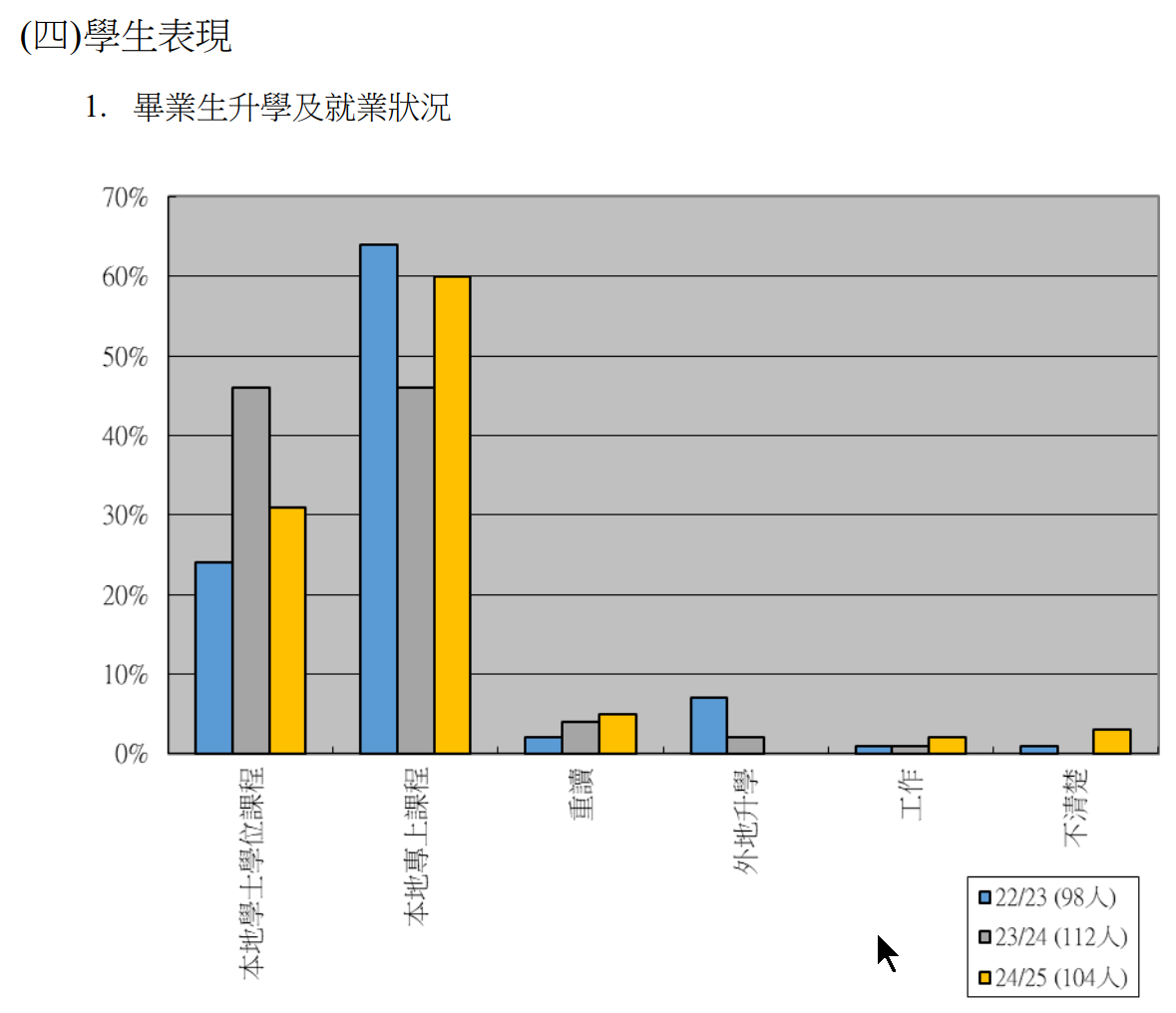 | DSE 考生人数 | 104 | 112 | 98 | ▼ 8 |