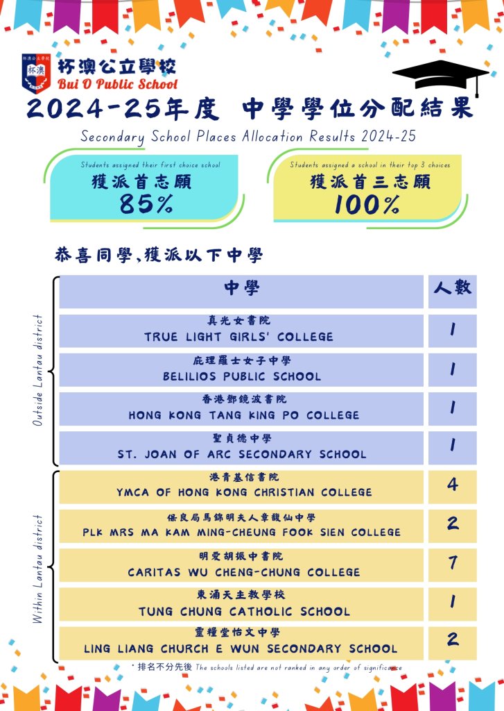 | 港青基信書院 | 4 | - | - | 2 | 2A | 178 | 男女 | 离岛 | 英文 | ||