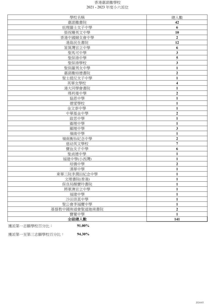 | 英皇書院 | 3 | 2% | 1 | 0.7% | 1 | 0.7% | 1A | 23 | 男 | 中西区 | 英文 |