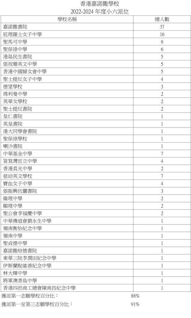 | 嘉諾撒聖家書院 | 1 | 0.7% | - | - | - | - | 1A | 30 | 女 | 九龙城 | 英文 |