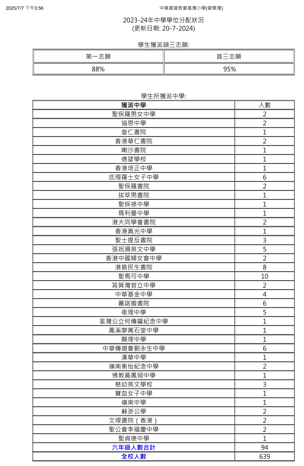 补充你在中华基督教会基湾小学(爱蝶湾)的录取经历