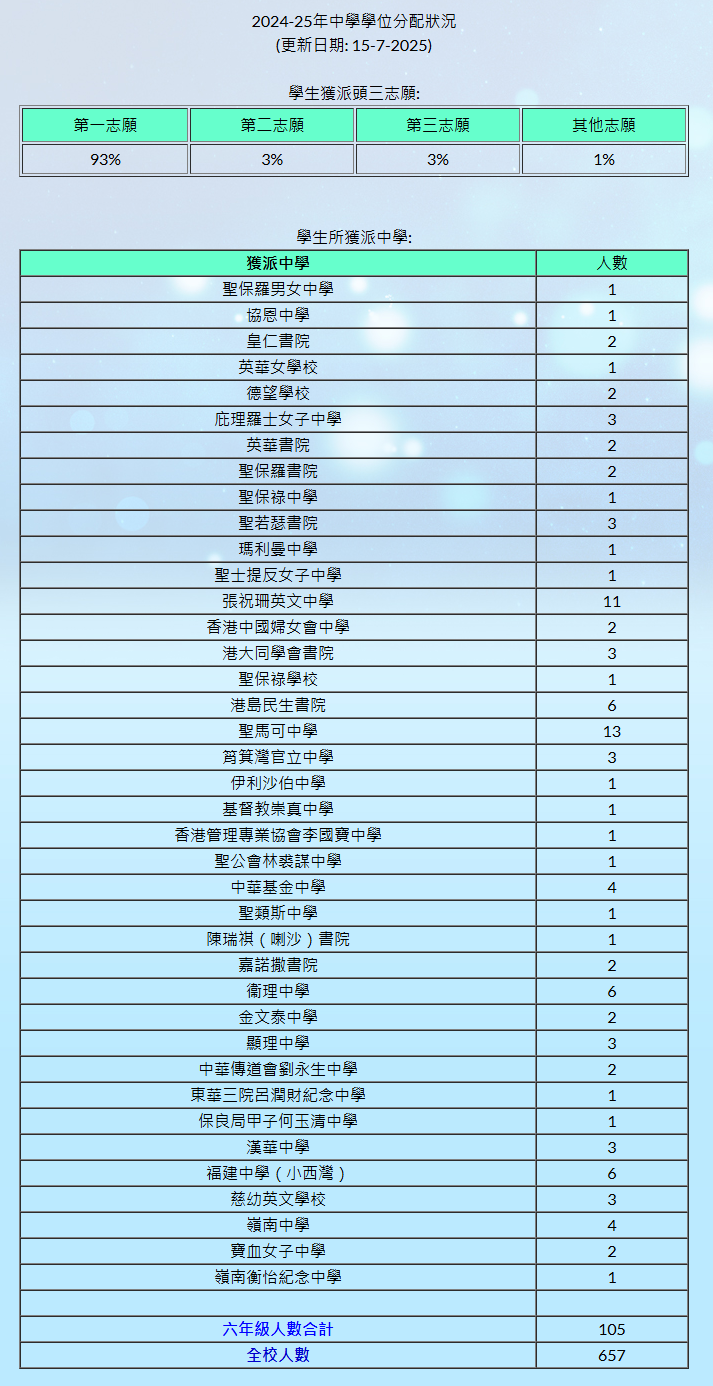 | 庇理羅士女子中學 BPS | 3 | 2.9% | 6 | 6.4% | 6 | 5.7% | 1B | 68 |