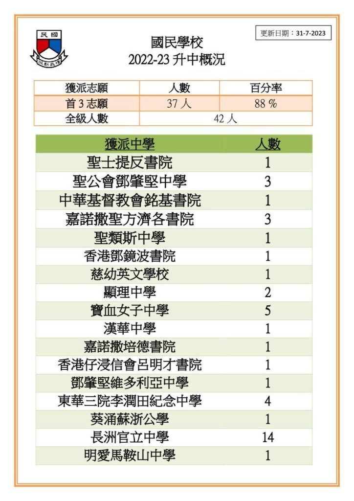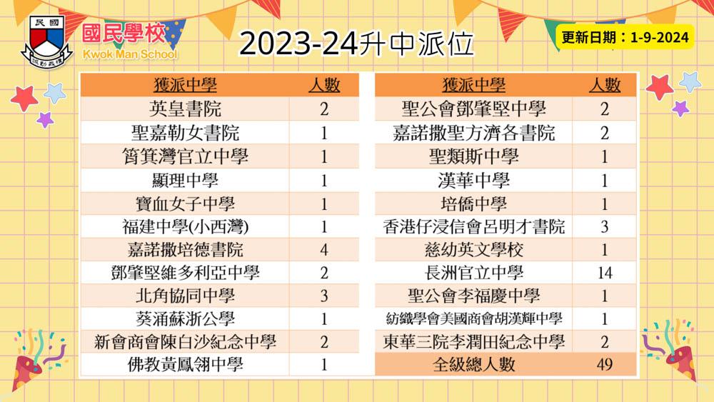 | 英皇書院 | 2 | 4.1% | - | - | 1A | 23 | 男 | 中西区 | 英文 |