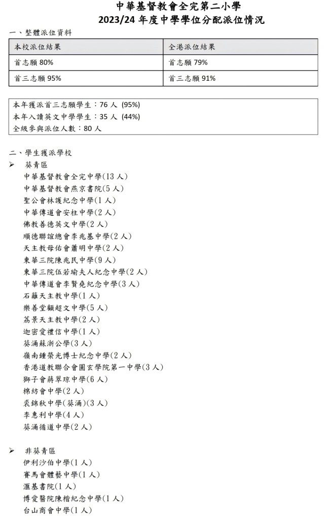 | 基督書院 | - | - | - | - | 1 | 1.2% | 3B | 389 | 男女 | 沙田 | 中文 |