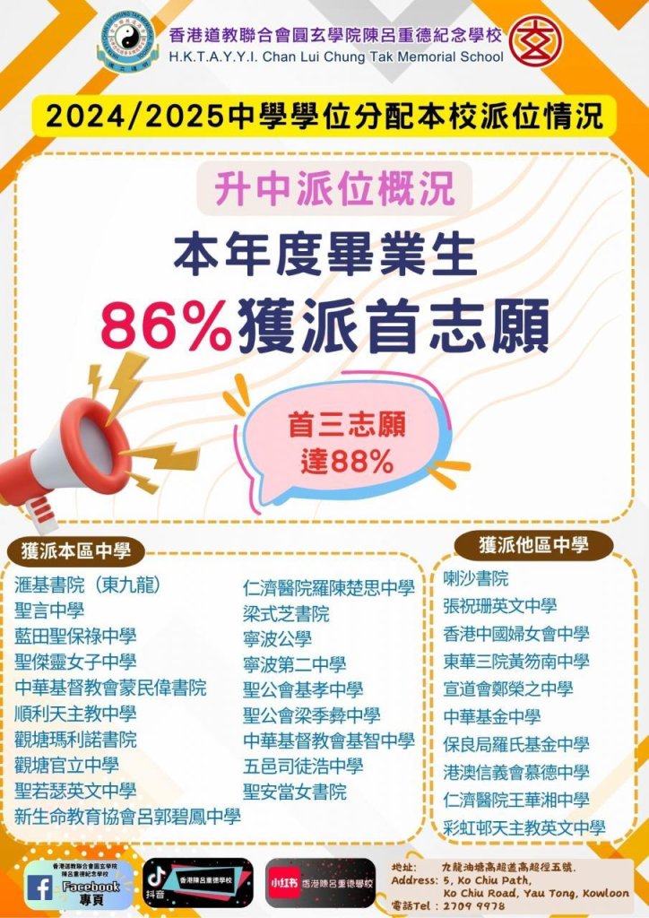 | 香港兆基創意書院 | - | - | - | - | 1 | 0.8% | 2C | 290 | 男女 | 九龙城 | 中文 |