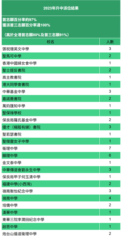 | 基督教崇真中學 | - | - | 1 | 1% | - | - | 1C | 99 | 男女 | 深水埗 | 英文 |