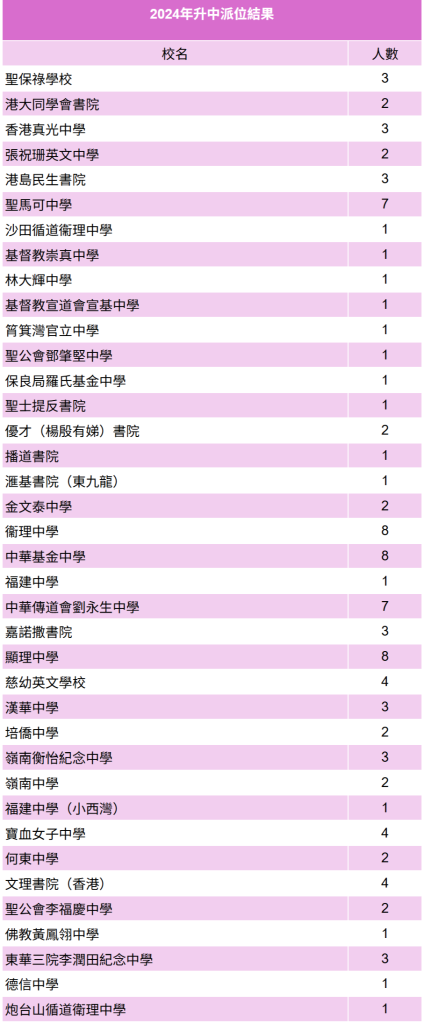 | 庇理羅士女子中學 | 2 | 3.3% | - | - | - | - | 1A | 15 | 女 | 东区 | 英文 |