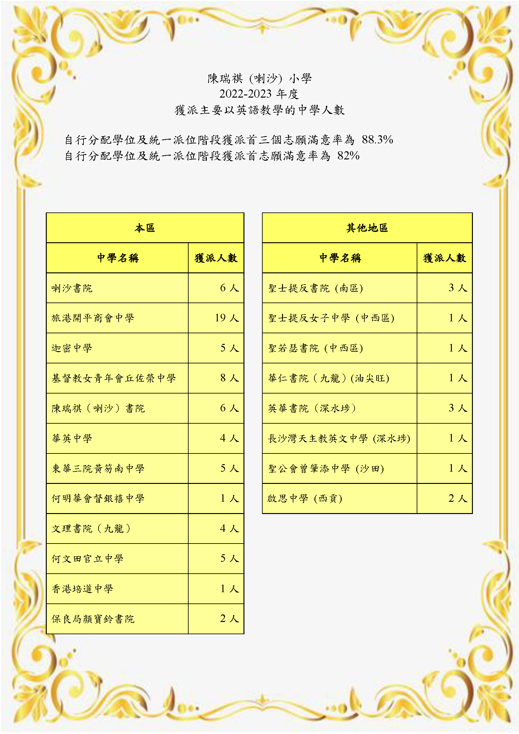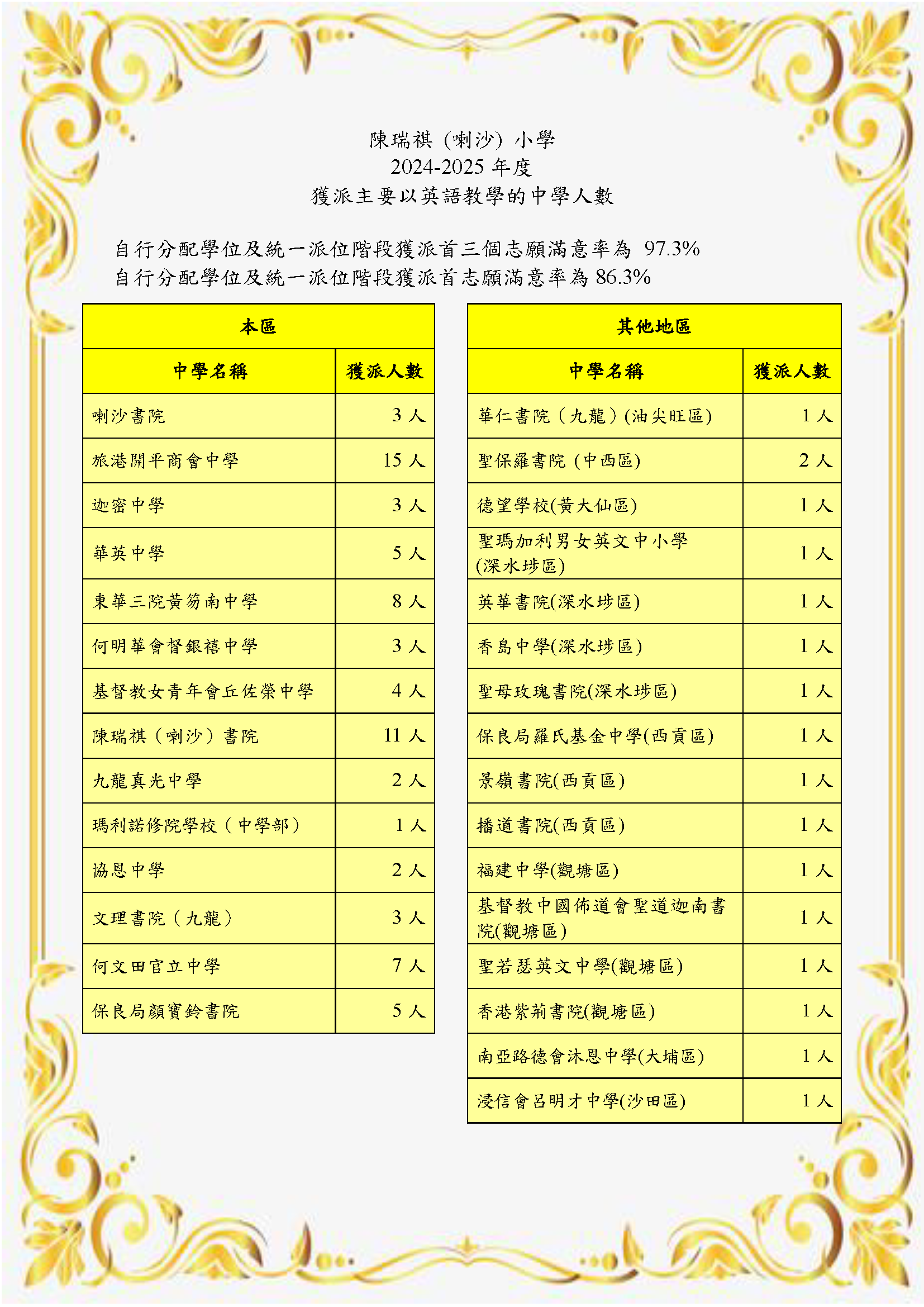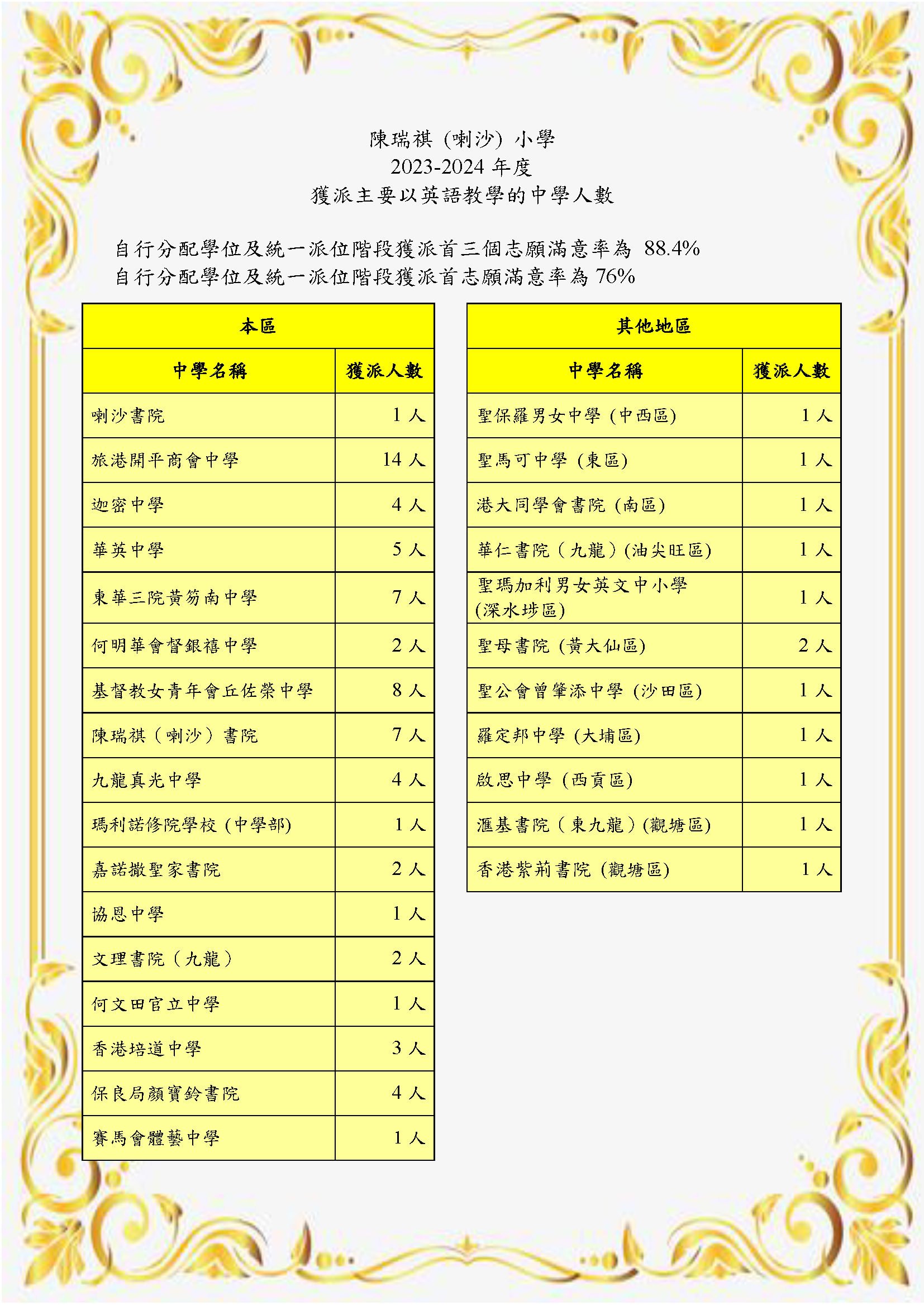 | 聖保羅書院 SPC | 2 | 1.5% | - | - | - | - | 1A | 5 |