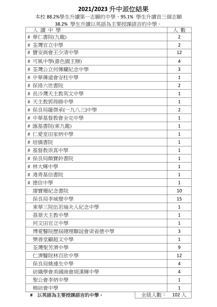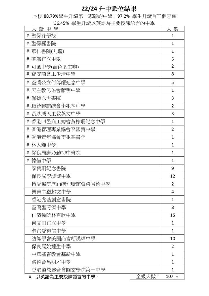 | 保祿六世書院 | 4 | 3.7% | 3 | 2.8% | 2 | 2% | 1B | 77 | 女 | 葵青 | 英文 |