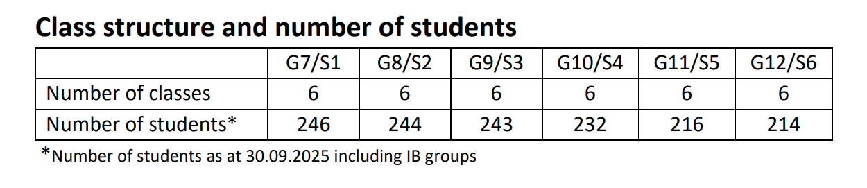 - 全校各级均设6班,S1班均人数最高达41人,而S6班均人数则下降至35.7人。