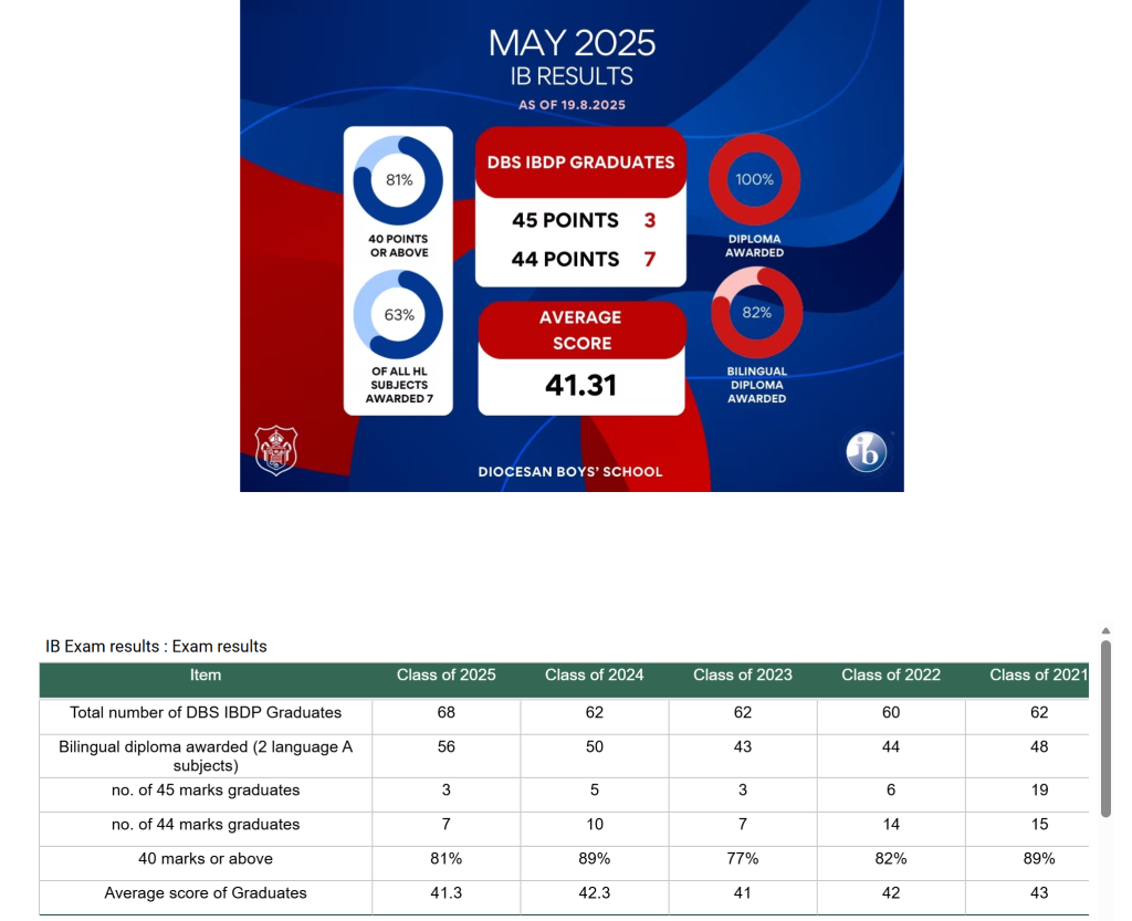 - 排名领先: 2025年IB成绩位列全港第3名,仅次于圣保罗男女中学及德瑞国际学校。