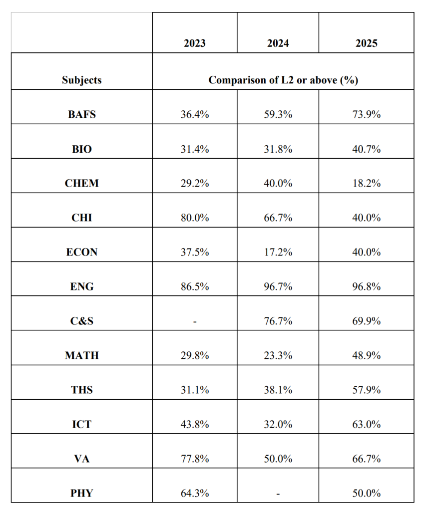 | Subject | 2025 (%) | 2024 (%) | Change |