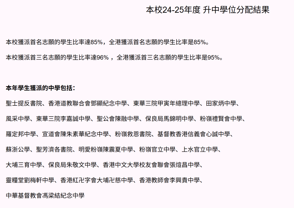 香港小学升中率排名(2025)