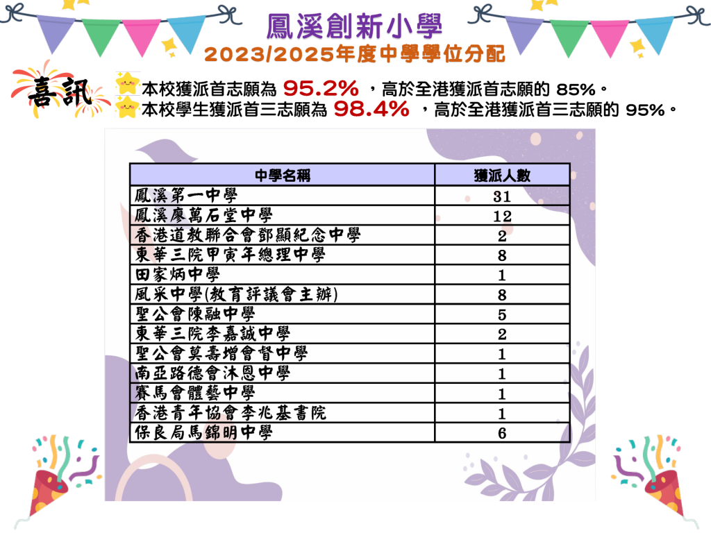 | 羅定邦中學 | - | - | 3 | 2.5% | - | - | 3B | 352 | 男女 | 大埔 | 英文 |