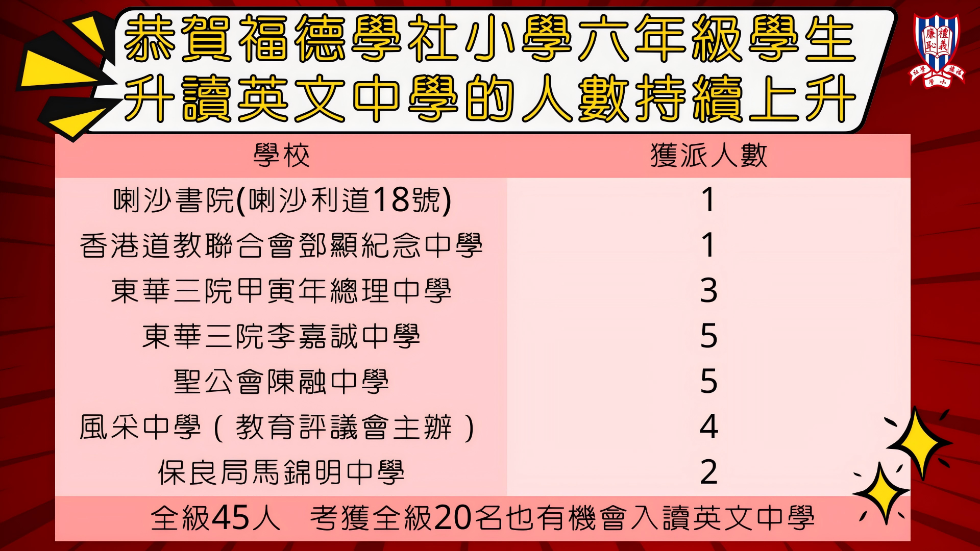 | 聖公會陳融中學 SKHCYSS | 9 | 19.1% | 16 | 30.8% | 3 | 5.5% | 1C | 146 |