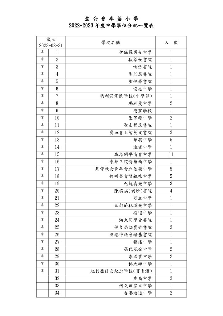 | 聖保羅書院 | - | - | - | - | 1 | 0.9% | 1A | 8 | 男 | 中西区 | 英文 |