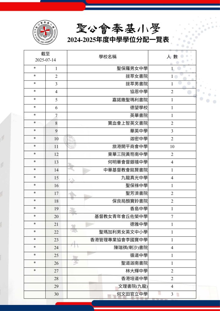 | 聖瑪加利男女英文中小學 | 1 | 1% | - | - | - | - | 1A | 33 | 男女 | 深水埗 | 英文 |