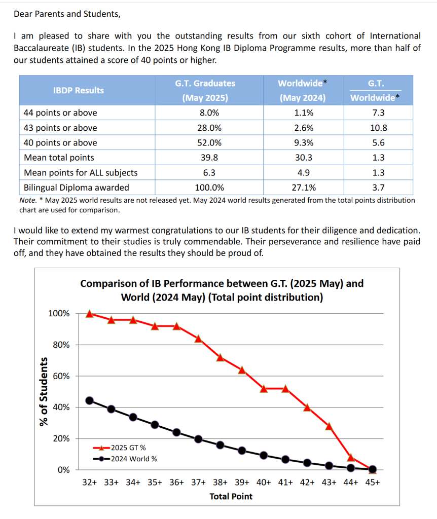 IB成绩位居香港前十,DSE成绩位居香港Band1