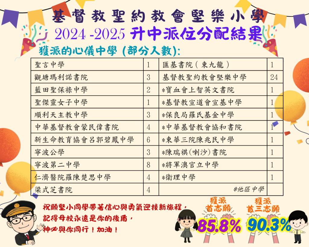 | 順利天主教中學 | 3 | - | - | - | - | 1C | 137 | 男女 | 观塘 | 英文 | |