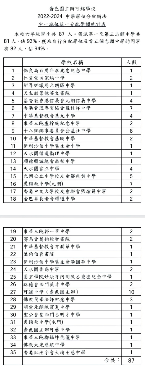 | 天主教崇德英文書院 STC | - | - | 1 | 1.1% | 2 | 2.4% | 1B | 64 |