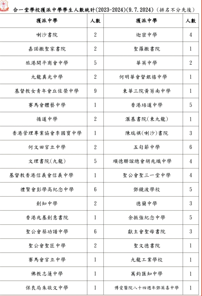 | 聖羅撒書院 | - | - | 1 | 1% | 1 | 1.2% | 1B | 97 | 女 | 沙田 | 英文 |