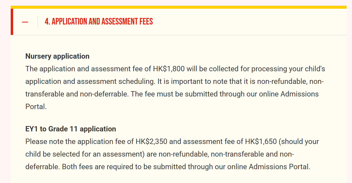 | 2 | Application 系统内线上缴纳 Application 费 HK$2,350 元(注:后续 Assessment Stage 还须缴纳 HK$1,650Assessment 费) |
