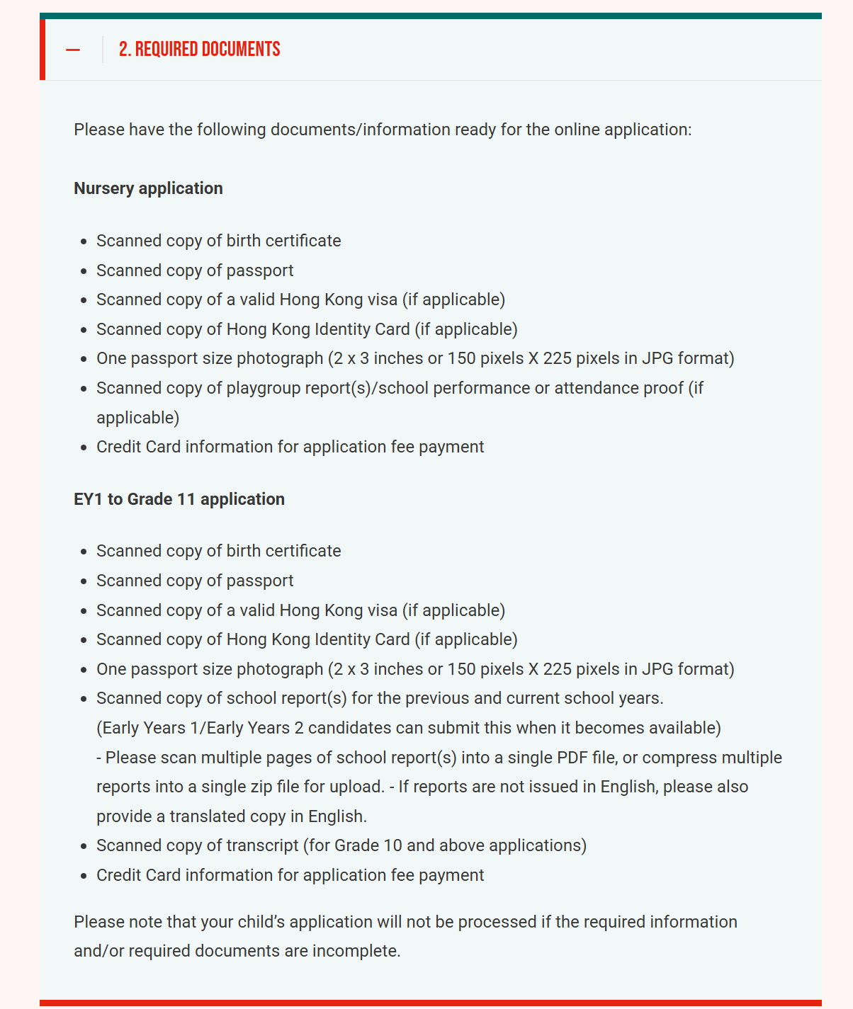 | 1 | Assessment在十一月/十二月进行,地点在CDNIS Nam Long Shan校区(居住在Hong Kong)或通过视频Assessment/在线面试(Overseas候选人)。持续时间:60分钟 为该Grade设计的面试,包括个人和小组Activities 内部设计的工作纸,涵盖词汇、写作、阅读、理解、数学和对话技能 审查Profile报告和Profile推荐信(Students推荐表) |