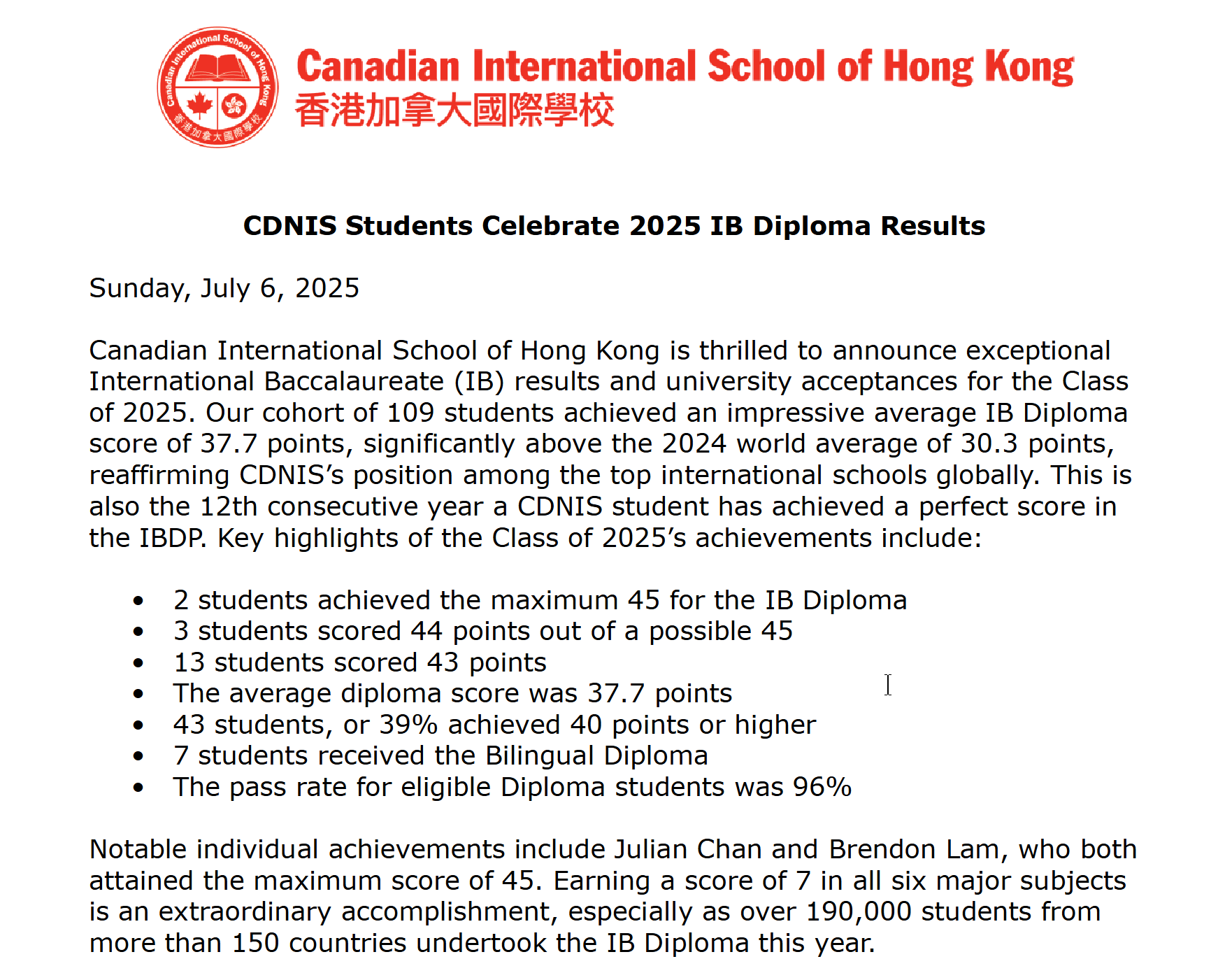 CANADIAN INTERNATIONAL SCHOOL OF HONG KONG