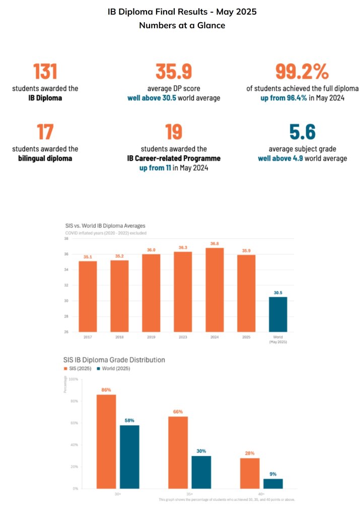 2025年IB均分为35.7分,在英基的7所分校中位居第五,在全港国际学校中位居第16名。