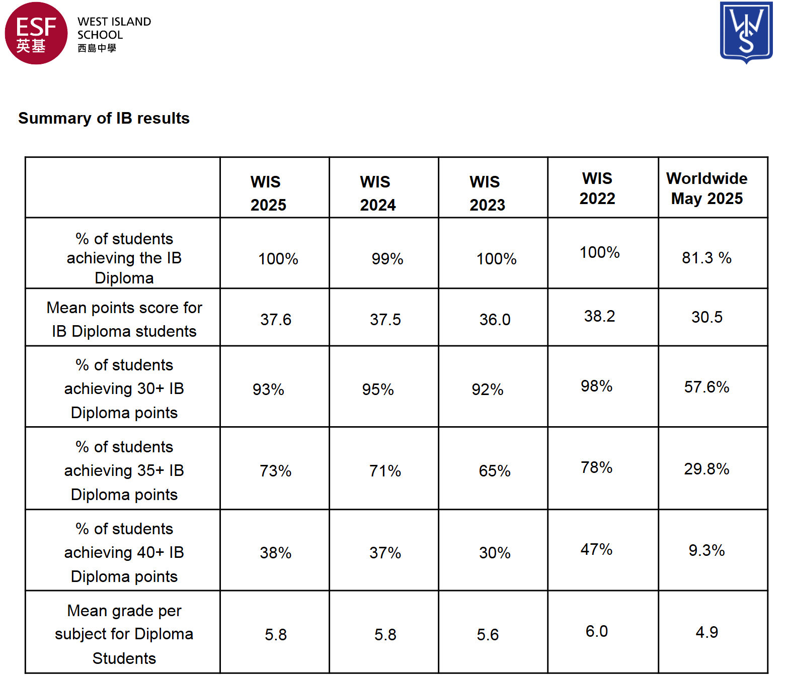 2025年IB均分为37.3分,在英基的7所分校中位居第一,在全港国际学校中位居第9名。