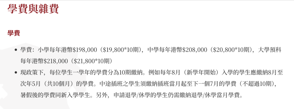 每年学费: HK$198,000 - $218,000