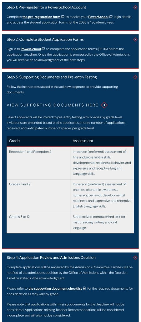 | 5 | 申请时间不能晚于截止日期,除非是海外移居家庭,会给予特殊安排 |