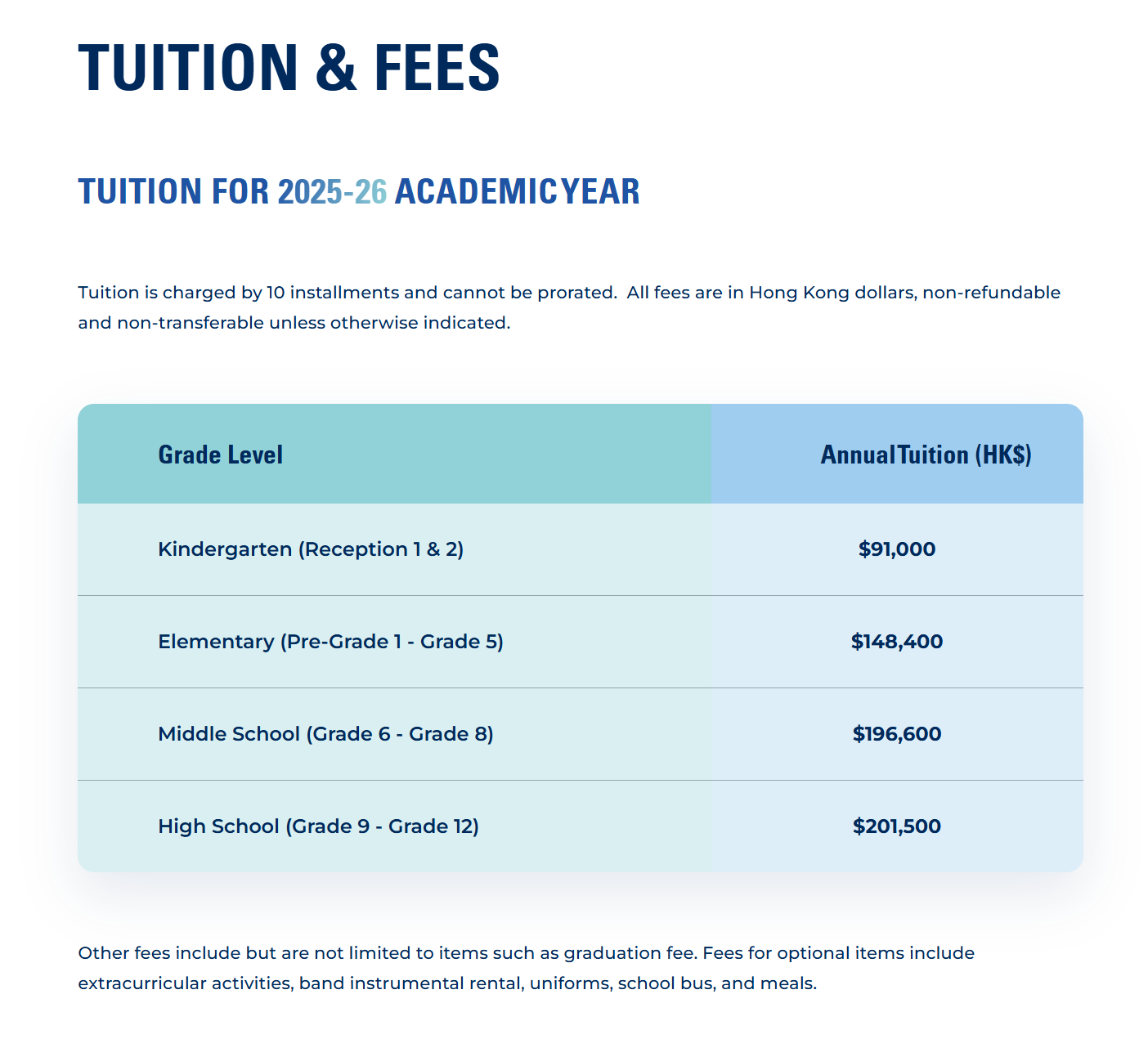 中学 G9 - G12$201,500