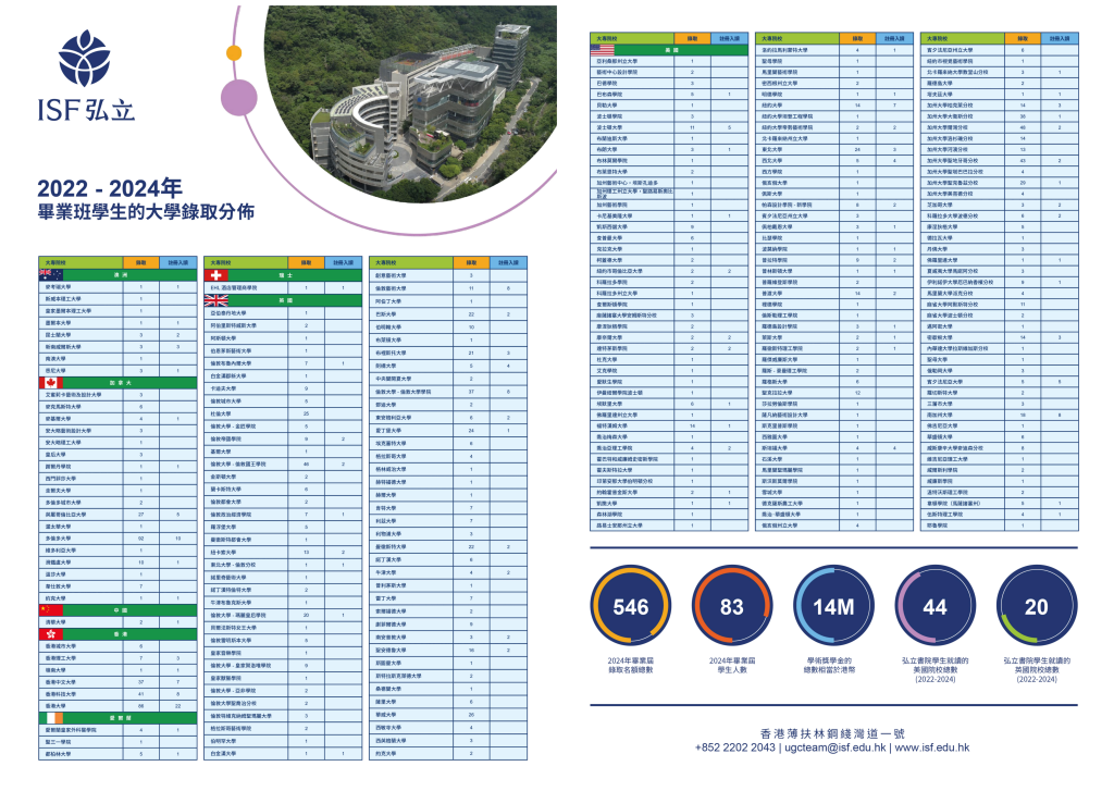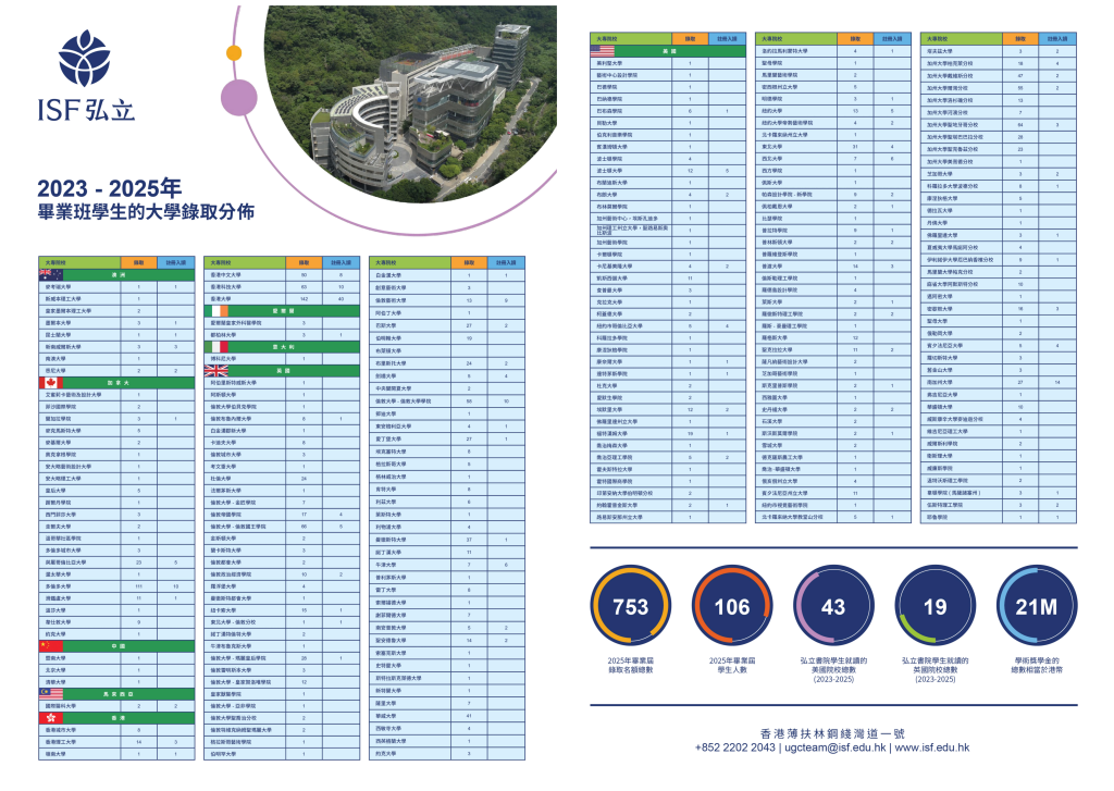 弘立2023-2025的录取结果,对比22-24学年,英美加的留学比例有轻微减少,留港人数增加明显,增加了4.5%。(注:由于年均数为约数,因此加总后不一定能刚好是100%的数,会略有差异。)