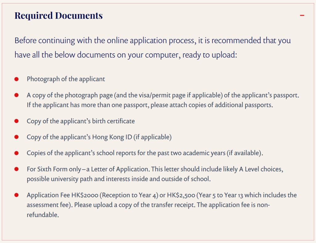 | 4 | 申请人的父母需具备足够的英语能力,以便通过英语在家支持学习,并能够完全用书面和口头英语与学校沟通。 |