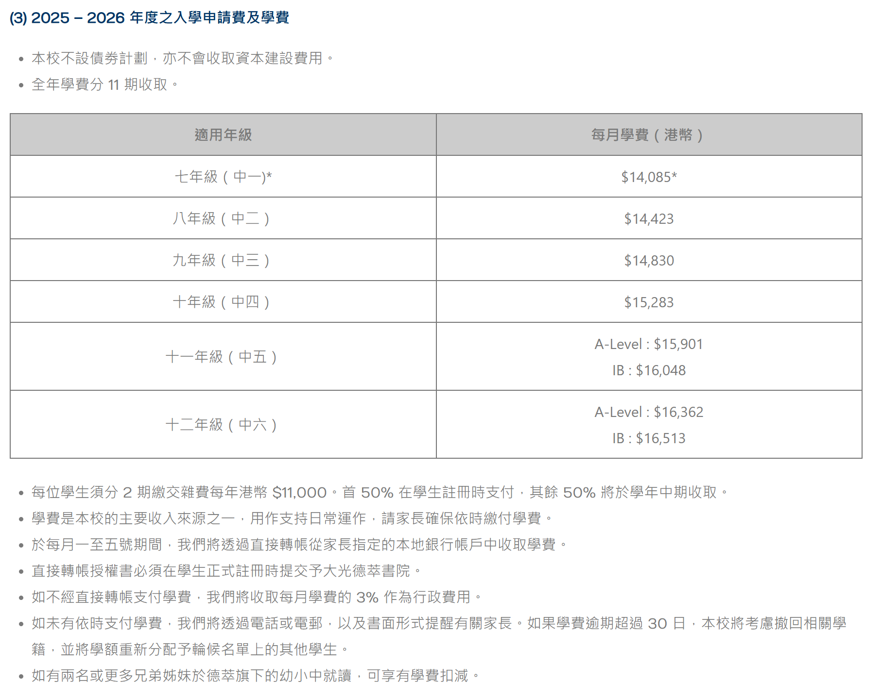 | G11 | G11 | 16 | $15,901 | $11,000 | $26,901 | 高中A Level |