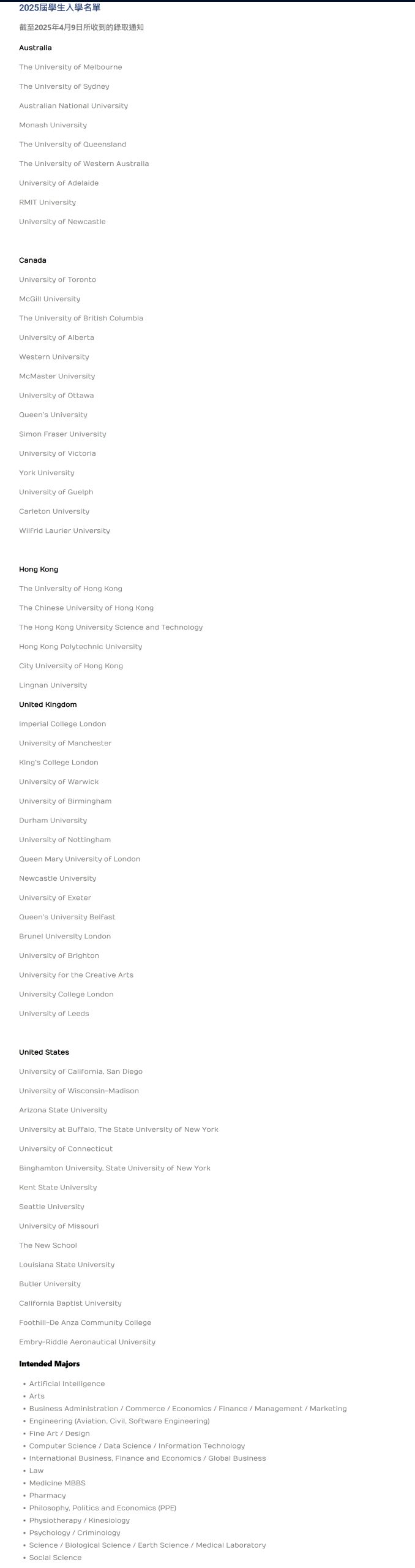| 大学名称 | 录取人数2525录取 | 录取25%25% | QS | US | THE | 国家 |