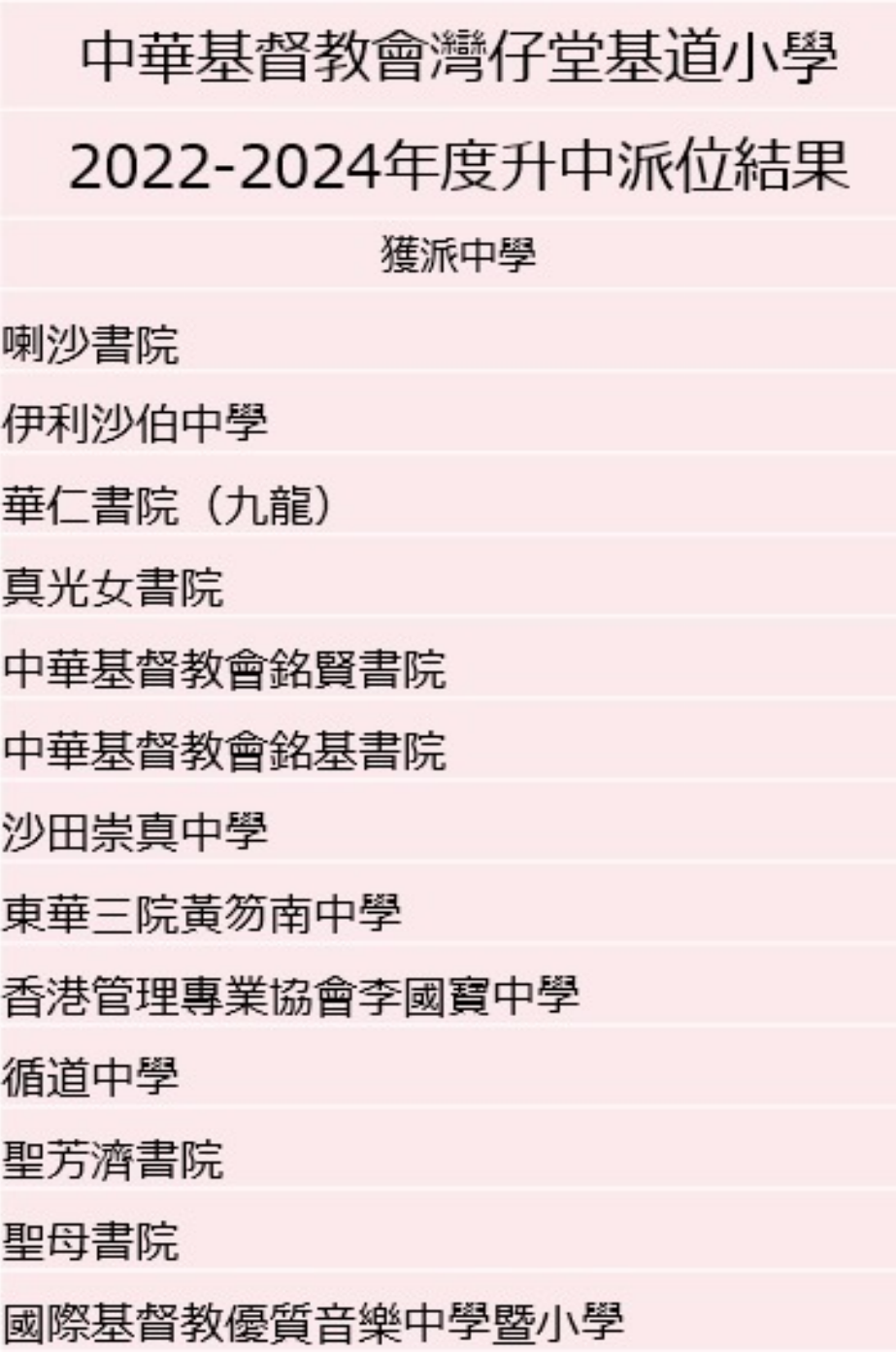 补充你在中华基督教会湾仔堂基道小学的录取经历