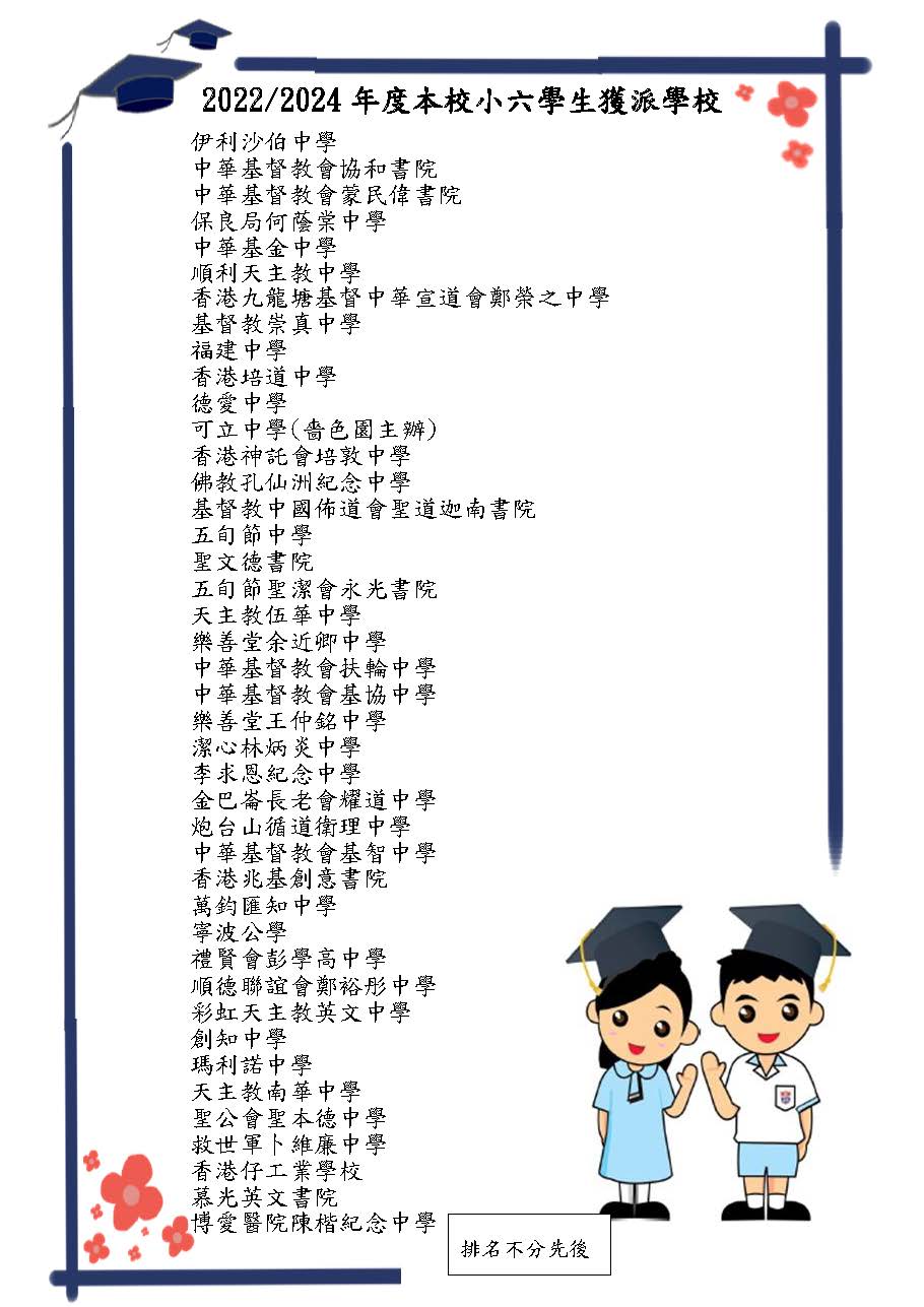 1. 按學生的全面能力分班(靈德智體群美),不設精英班。 2. 四至六年級中、英文科按語文能力分組上課。 展开更多收起
