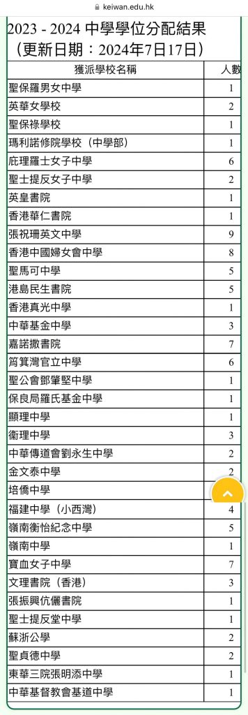 2024 升中派位结果