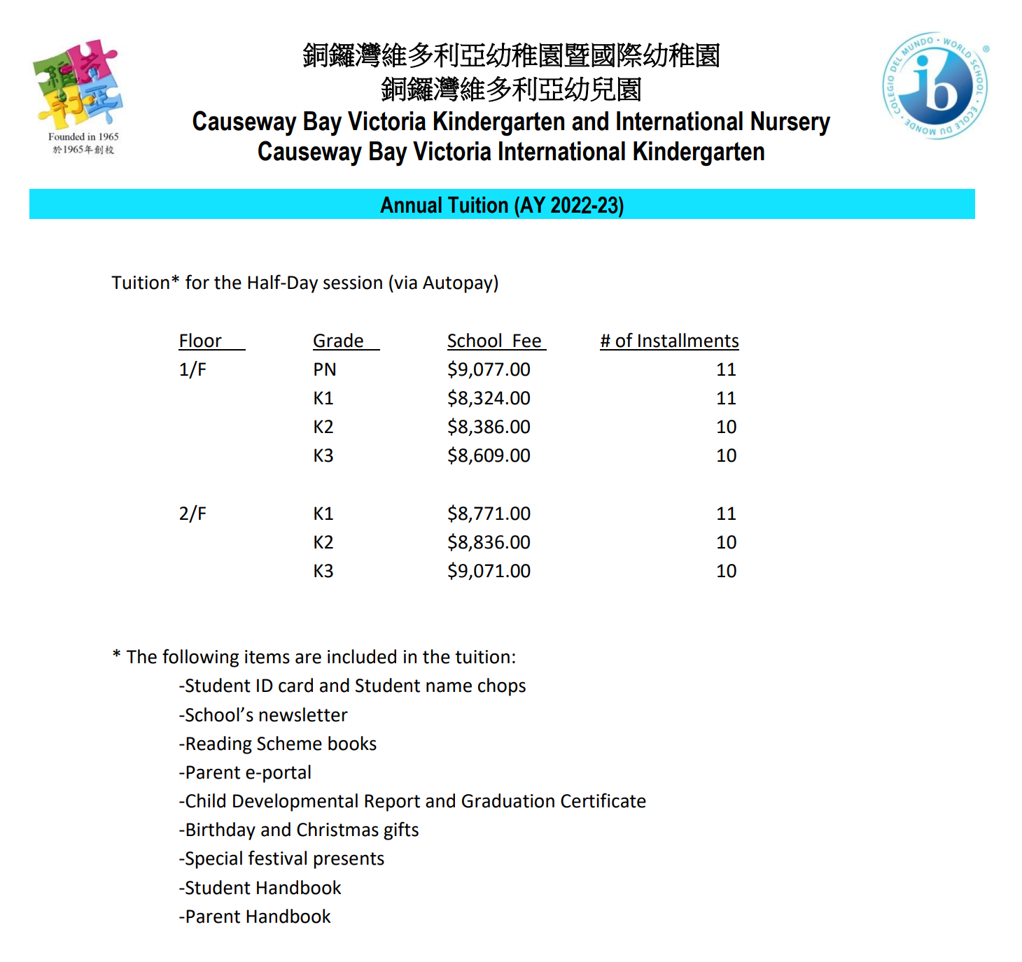 幼稚园 K1$96,480