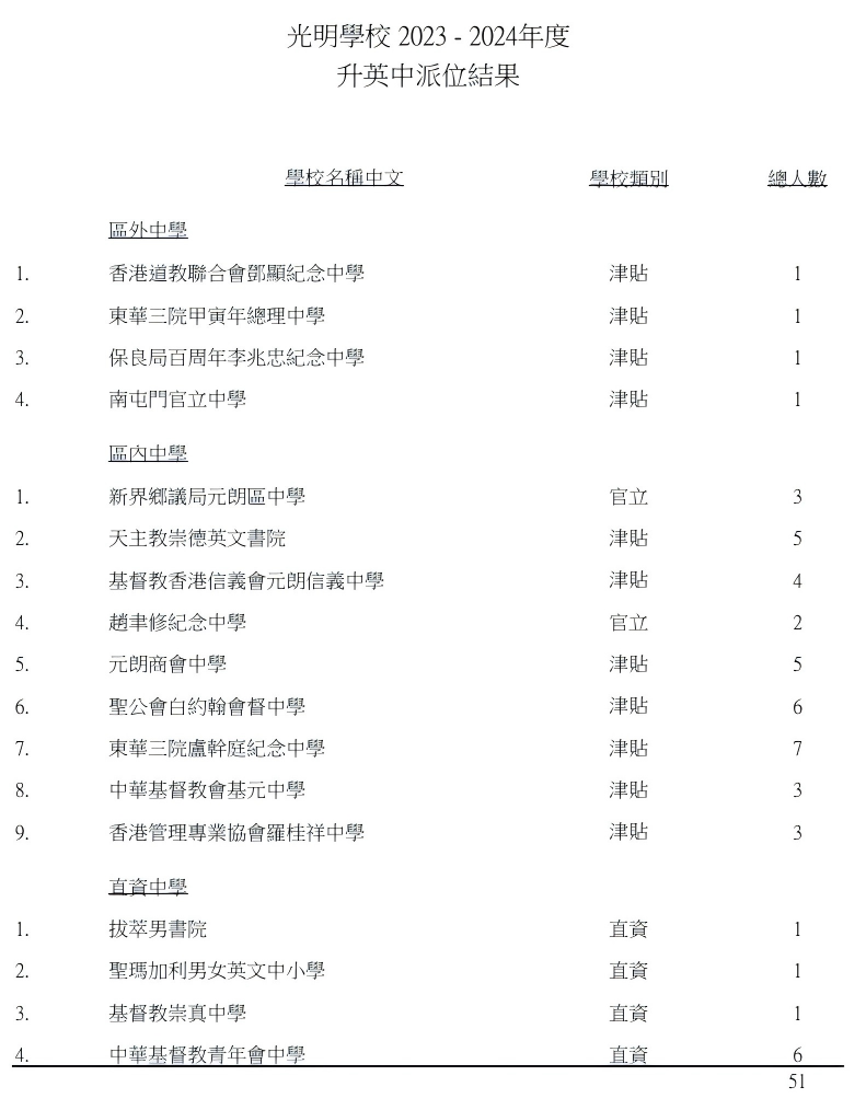 | 羅定邦中學 | - | - | 1 | 0.9% | 3B | 352 | 男女 | 大埔 | 英文 |