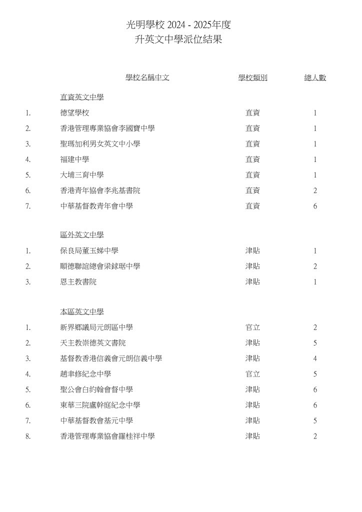 | 天主教崇德英文書院 | 3 | 2.7% | 5 | 4.4% | 1A | 37 | 男女 | 元朗 | 英文 |