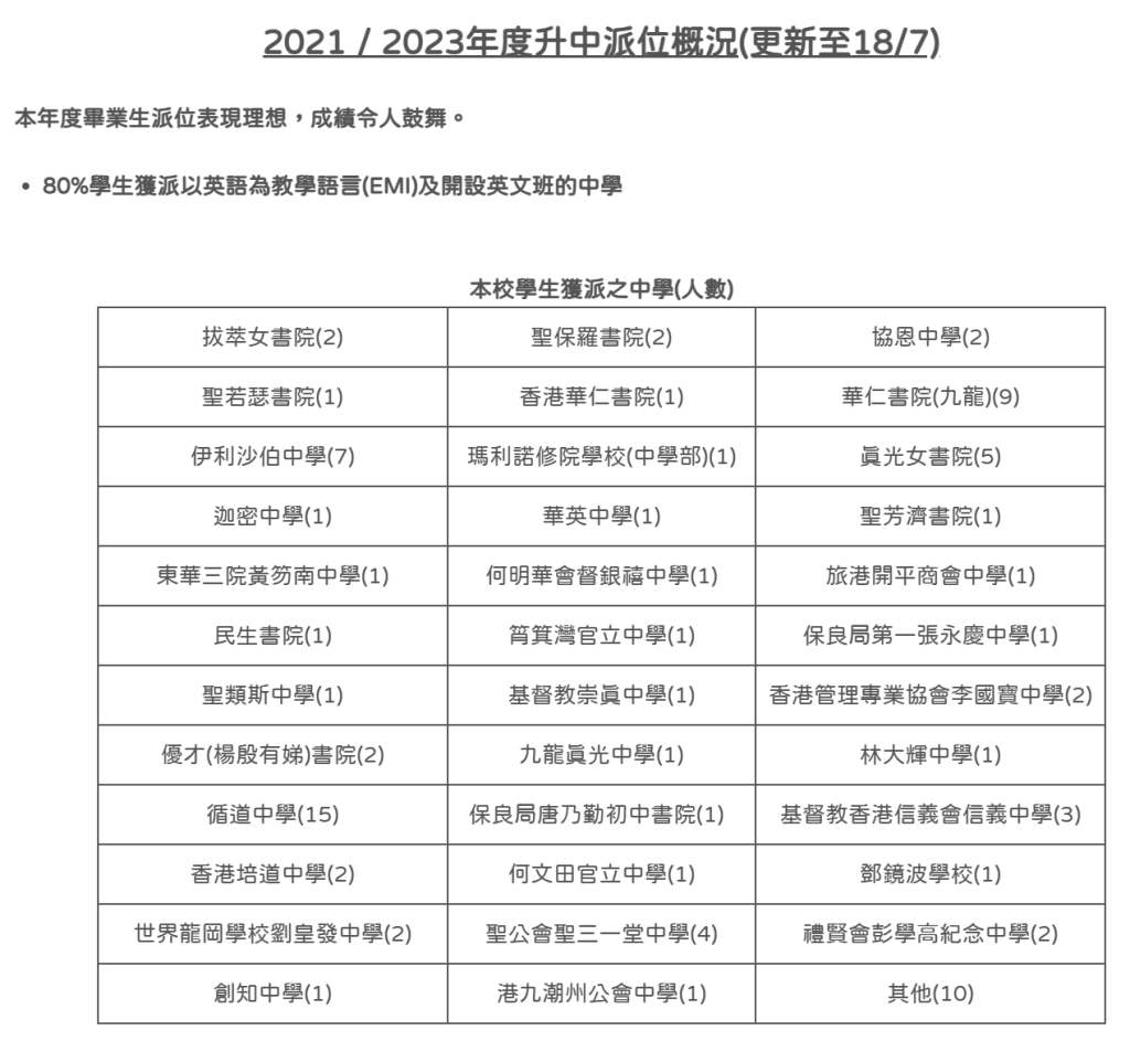 | 聖傑靈女子中學 | - | - | 1 | 1.1% | - | - | 1B | 75 | 女 | 观塘 | 英文 |