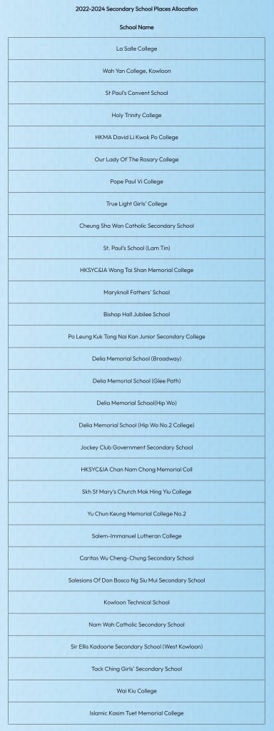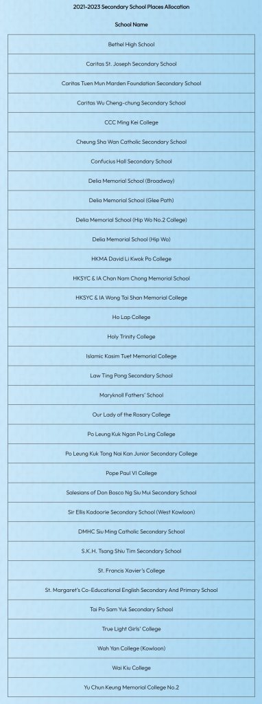 香港本地中学概览