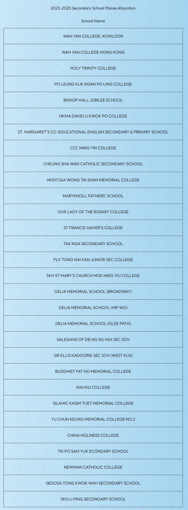 香港本地小学名录(2025)