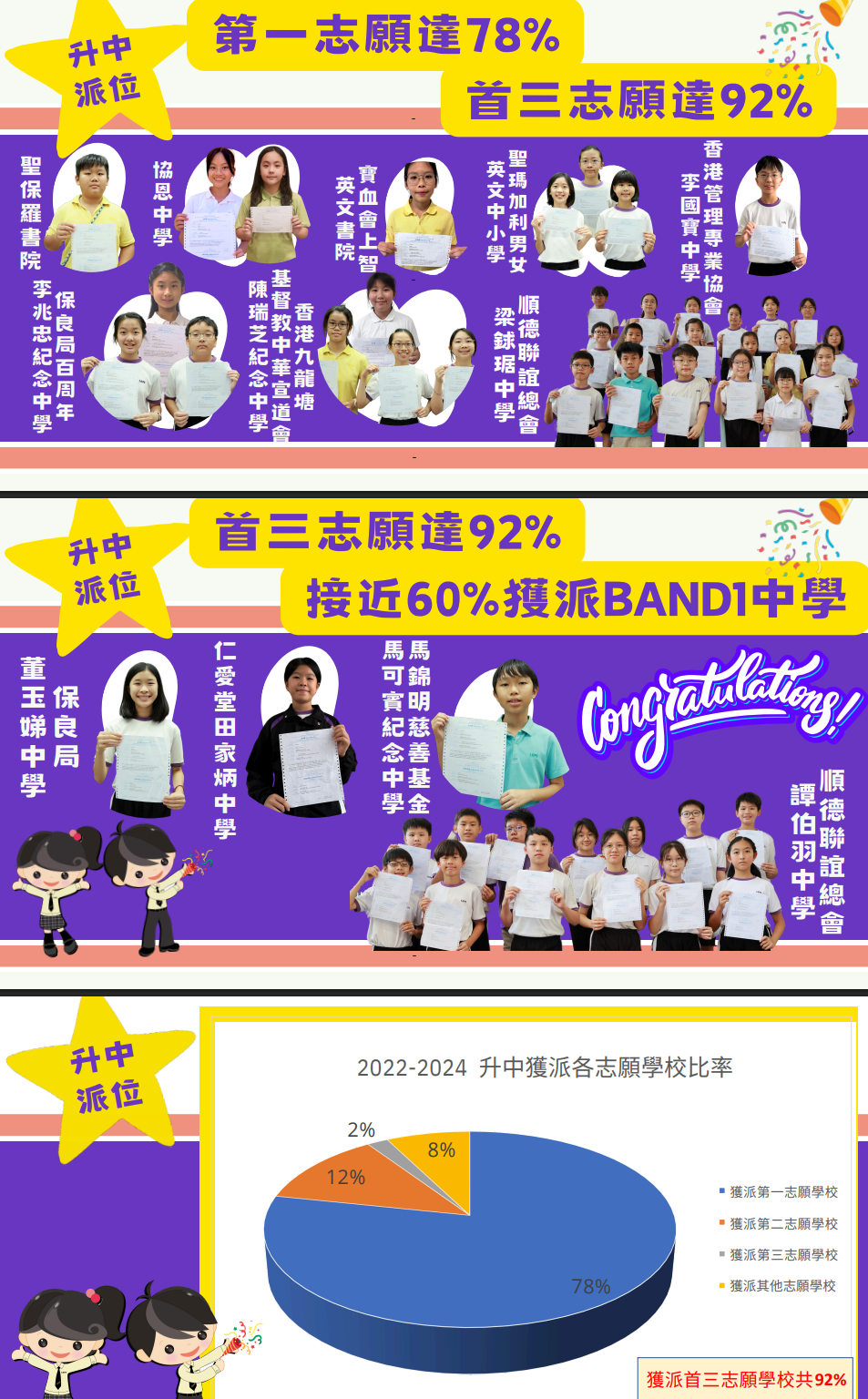 | 保良局百周年李兆忠紀念中學 LSCMC | 3 | 2.8% | 3 | 2.8% | - | - | 1A | 24 |